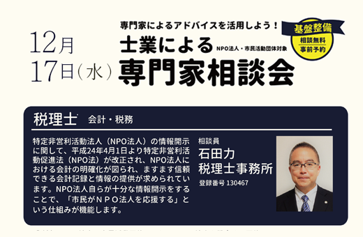 税理士による会計・税務の専門家相談会をご利用ください。※(無料)要予約。