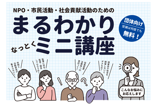 サポートセンター登録団体の皆様の個別講座を開催!設立、会計、運営、基盤整備、事業報告などを個別対応で実施します!