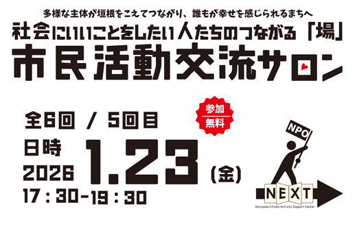 【交流会(オンライン有)】(郡山市)2025年度市民活動交流サロン(第5回/全6回)開催のお知らせNew!!
