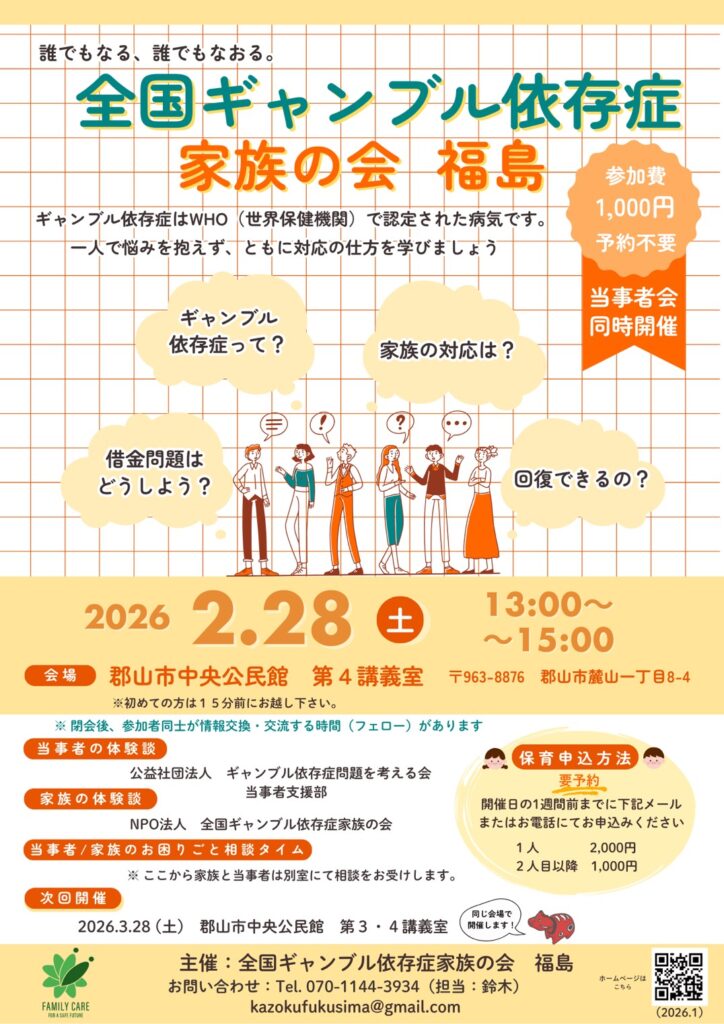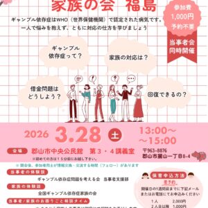 【登録団体の広報(相談会)】全国ギャンブル依存症家族の会 福島 2026年2月の活動案内