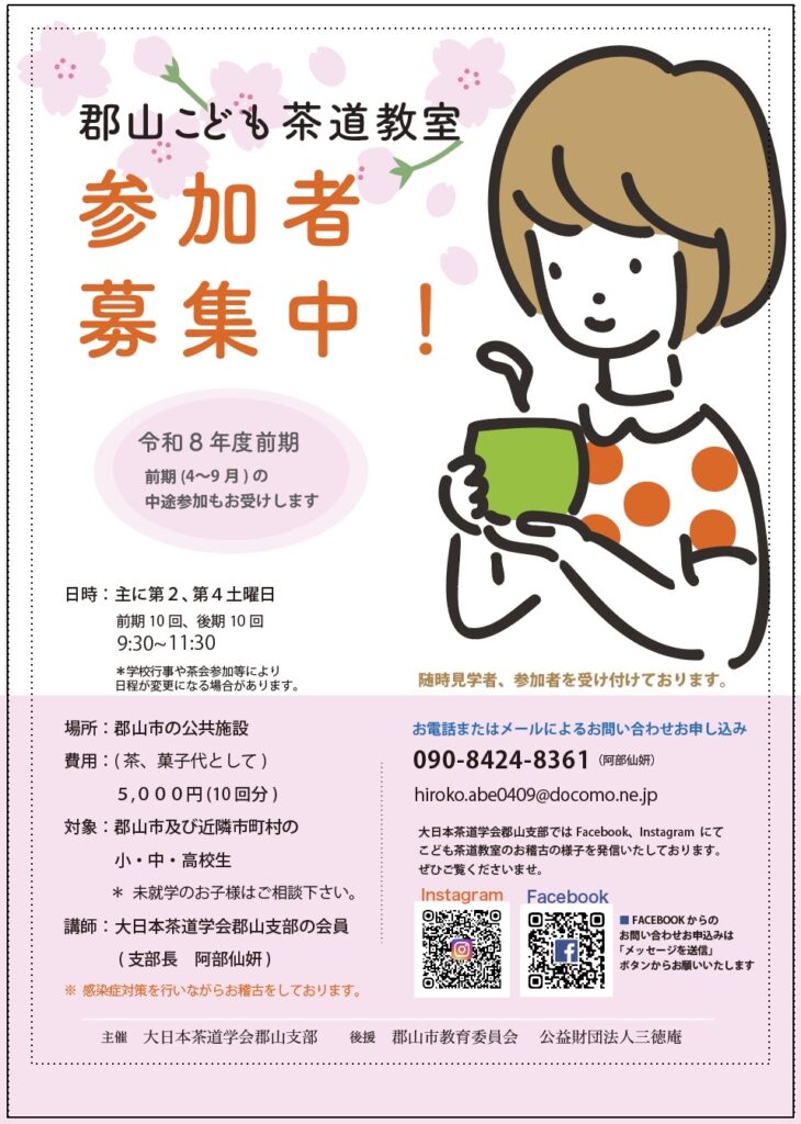 【登録団体の広報(文化・伝統)】大日本茶道学会郡山支部 「令和8年度前期 郡山こども茶道教室」参加者募集のお知らせ