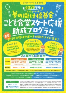【助成金(子ども分野)】(募集締切:2026年4月30日)2026年度 ファミリーマート&むすびえ こども食堂スタート応援助成プログラム(春季)募集のお知らせ