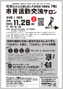 【交流会(オンライン有)】(郡山市)2025年度市民活動交流サロン(第4回/全6回)開催のお知らせ