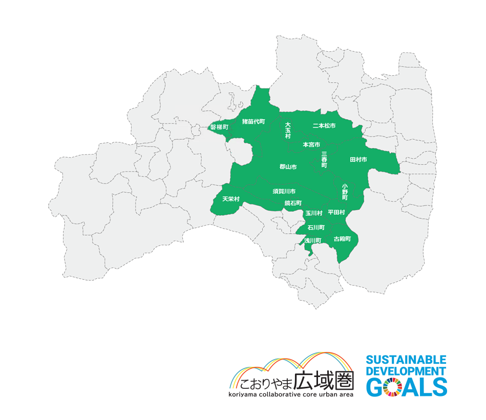 須賀川市、二本松市、田村市、本宮市、大玉村、鏡石町、天栄村、磐梯町、猪苗代町、石川町、玉川村、平田村、浅川町、古殿町、三春町、小野町、郡山市(計17市町村)